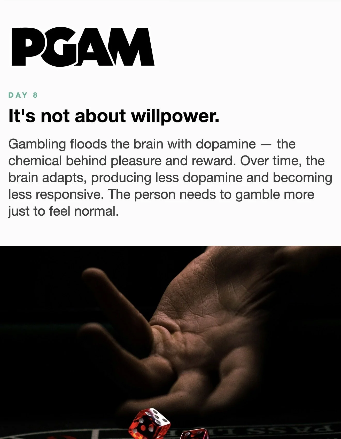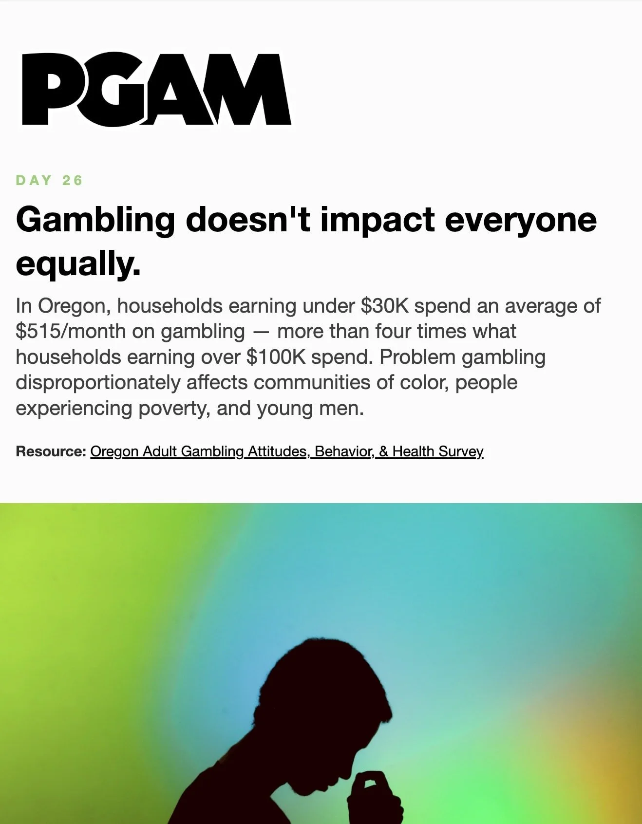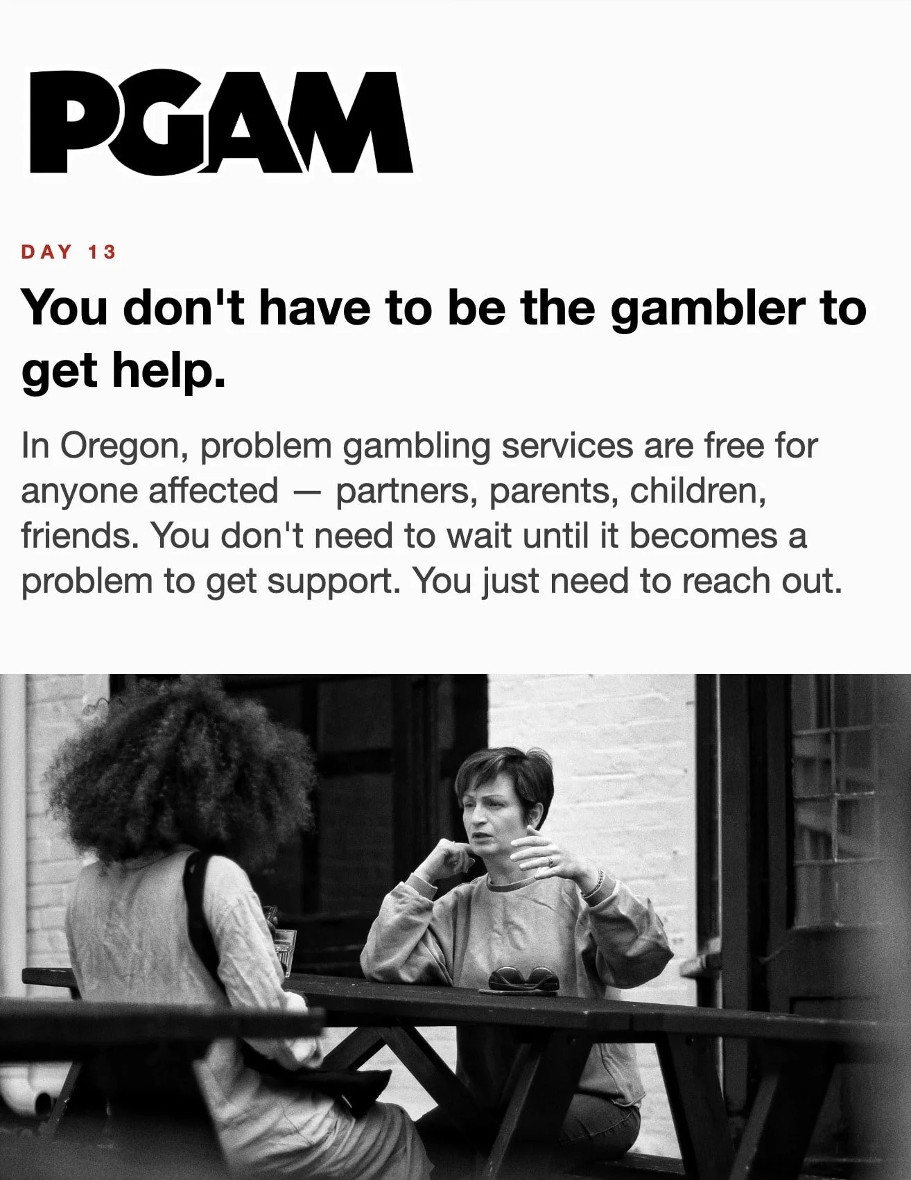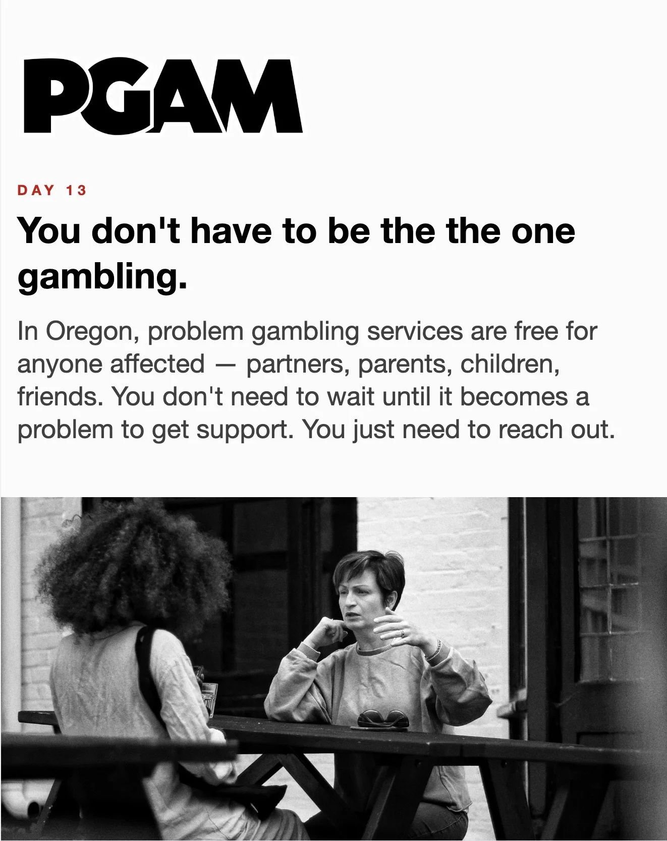 March is Problem Gambling Awareness Month Each day during March, receive a short Email or Text Message with compelling facts and useful skills. Sign up below… * indicates required Email Address * Get the Emails * indicates required SMS Phone Number * PGAM – By providing your phone number and checking the box, you agree to receive SMS communications from PGAM. Message and data rates may apply. Text HELP for help. Text STOP to cancel. See Terms and Privacy Policy. Get the Texts MarchLetters 1st 2nd 3rd 4th 5th 6th 7th 8th 9th 10th 11th 12th 13th 14th 15th 16th 17th 18th 19th 20th 21st 22nd 23rd 24th 25th 26th 27th 28th 29th 30th 31st