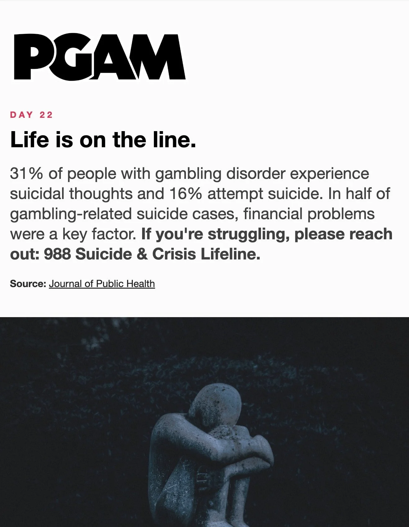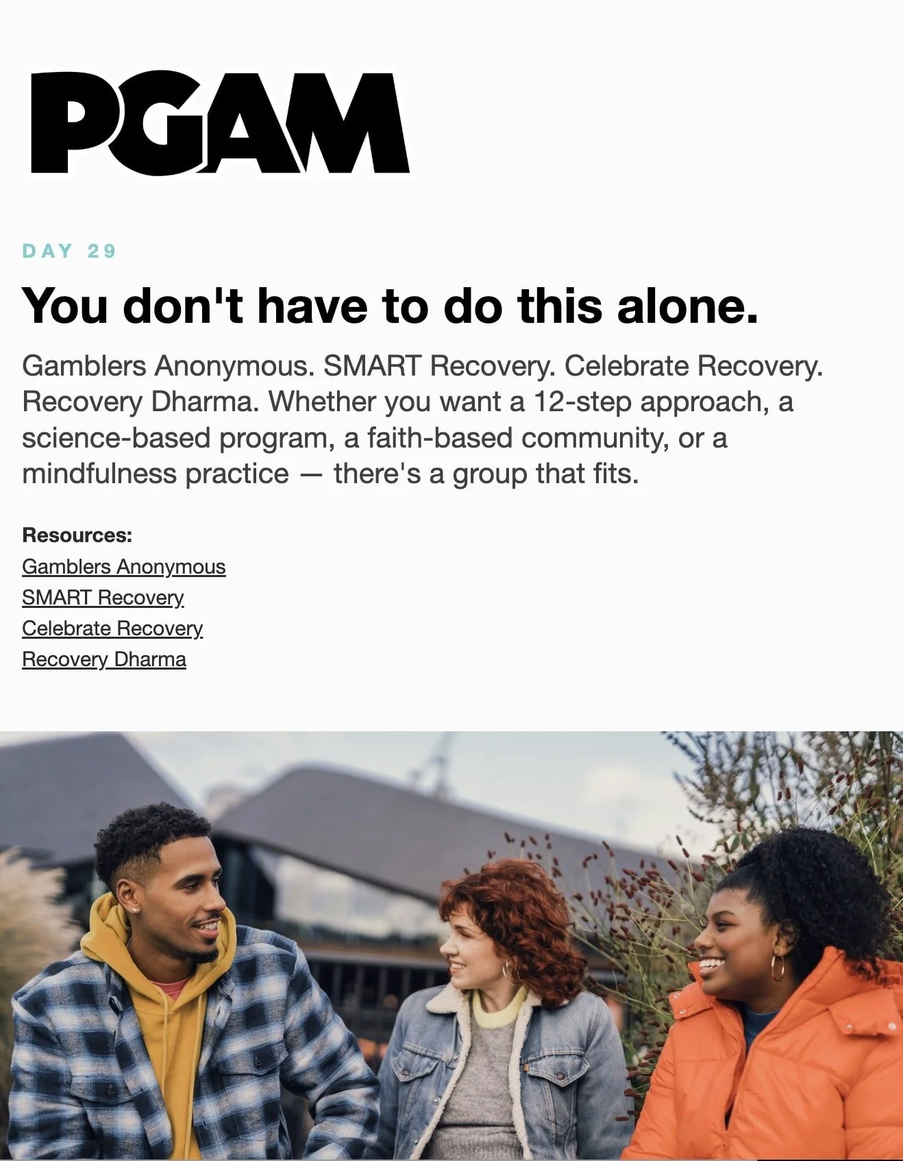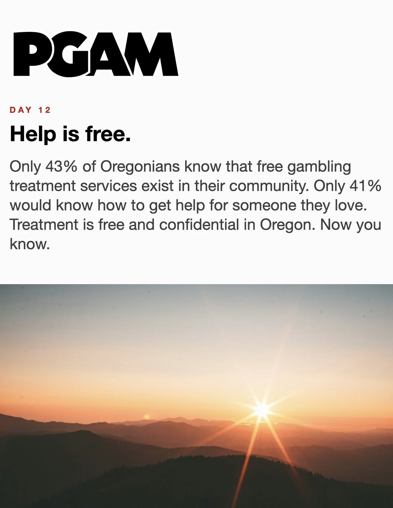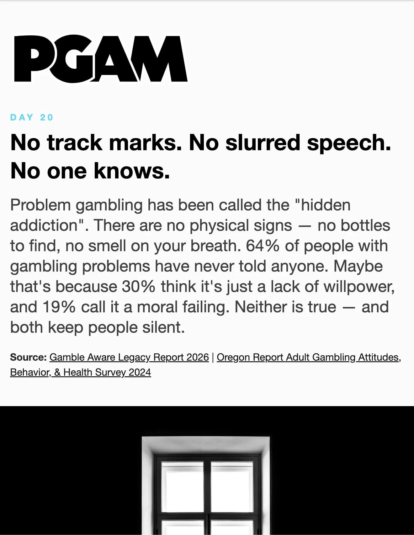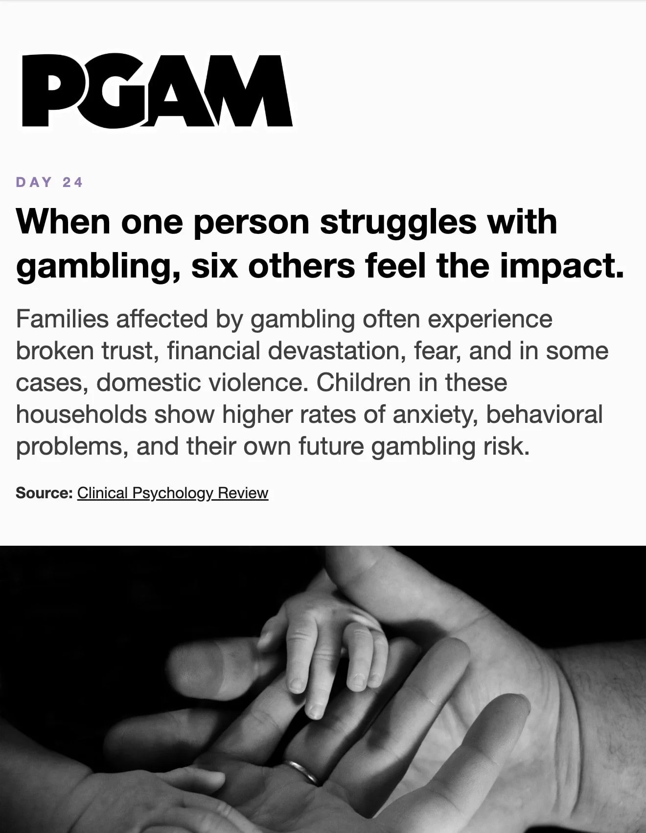 March is Problem Gambling Awareness Month Each day during March, receive a short Email or Text Message with compelling facts and useful skills. Sign up below… * indicates required Email Address * Get the Emails * indicates required SMS Phone Number * PGAM – By providing your phone number and checking the box, you agree to receive SMS communications from PGAM. Message and data rates may apply. Text HELP for help. Text STOP to cancel. See Terms and Privacy Policy. Get the Texts MarchLetters 1st 2nd 3rd 4th 5th 6th 7th 8th 9th 10th 11th 12th 13th 14th 15th 16th 17th 18th 19th 20th 21st 22nd 23rd 24th 25th 26th 27th 28th 29th 30th 31st
