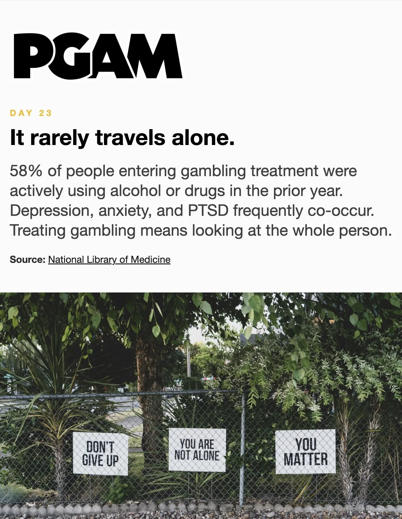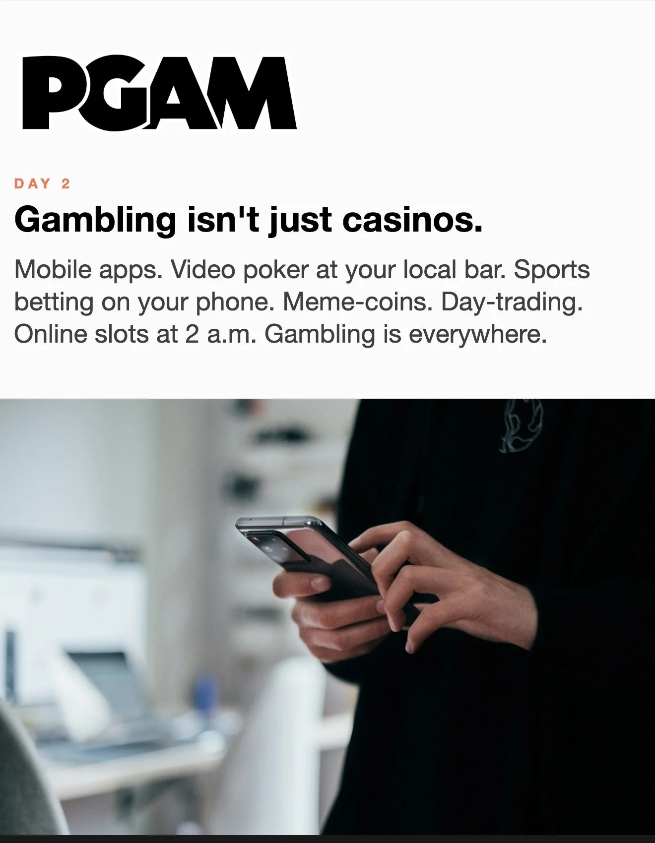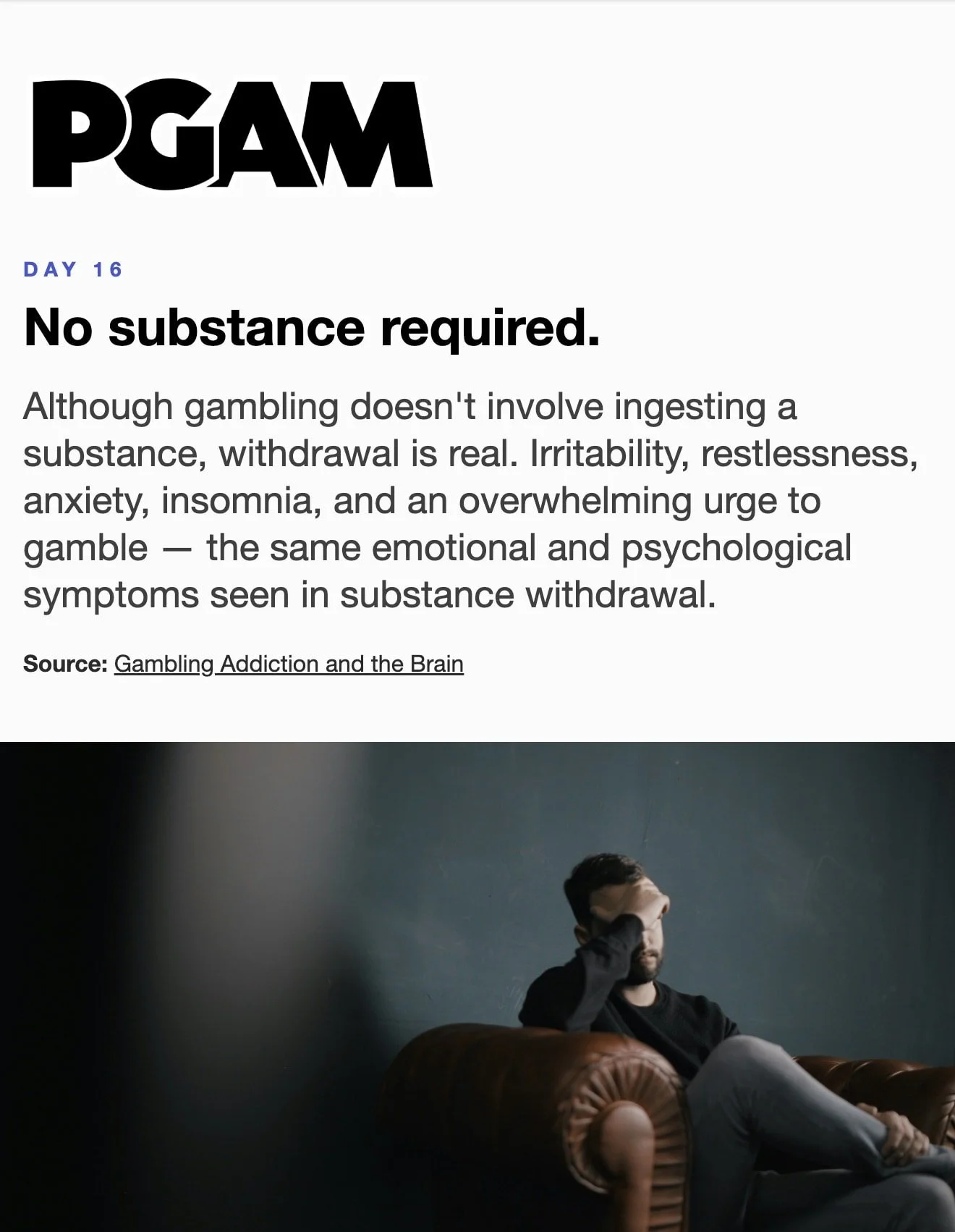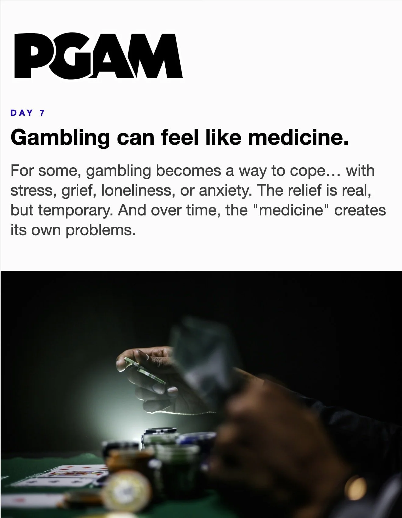 March is Problem Gambling Awareness Month Each day during March, receive a short Email or Text Message with compelling facts and useful skills. Sign up below… * indicates required Email Address * Get the Emails * indicates required SMS Phone Number * PGAM – By providing your phone number and checking the box, you agree to receive SMS communications from PGAM. Message and data rates may apply. Text HELP for help. Text STOP to cancel. See Terms and Privacy Policy. Get the Texts MarchLetters 1st 2nd 3rd 4th 5th 6th 7th 8th 9th 10th 11th 12th 13th 14th 15th 16th 17th 18th 19th 20th 21st 22nd 23rd 24th 25th 26th 27th 28th 29th 30th 31st